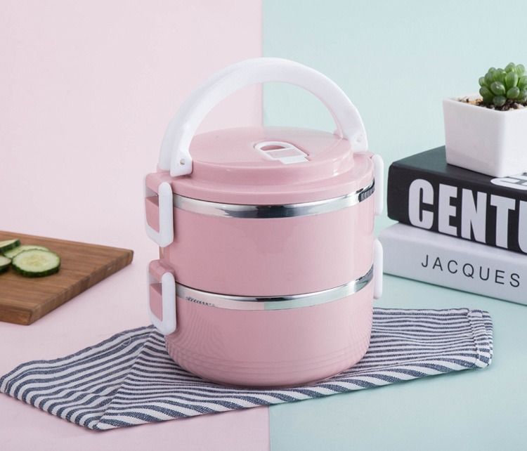 3 and 4 Layer Lunch Round Bento box Airtight Plastic Leakproof Stainless Steel Lunch Box For Kids